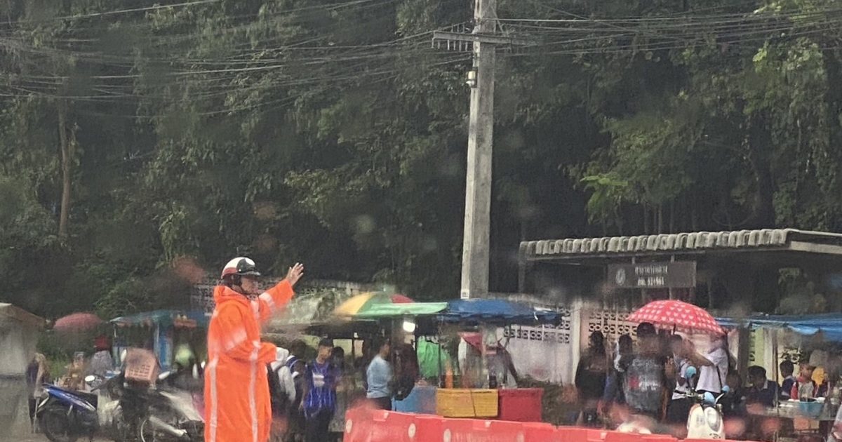 ส.ต.ต.พลางกูร มะยุรา (6104) อำนวยความสะดวกการจราจรหน้าโรงเรียนชุมชนบ้านบ่อ