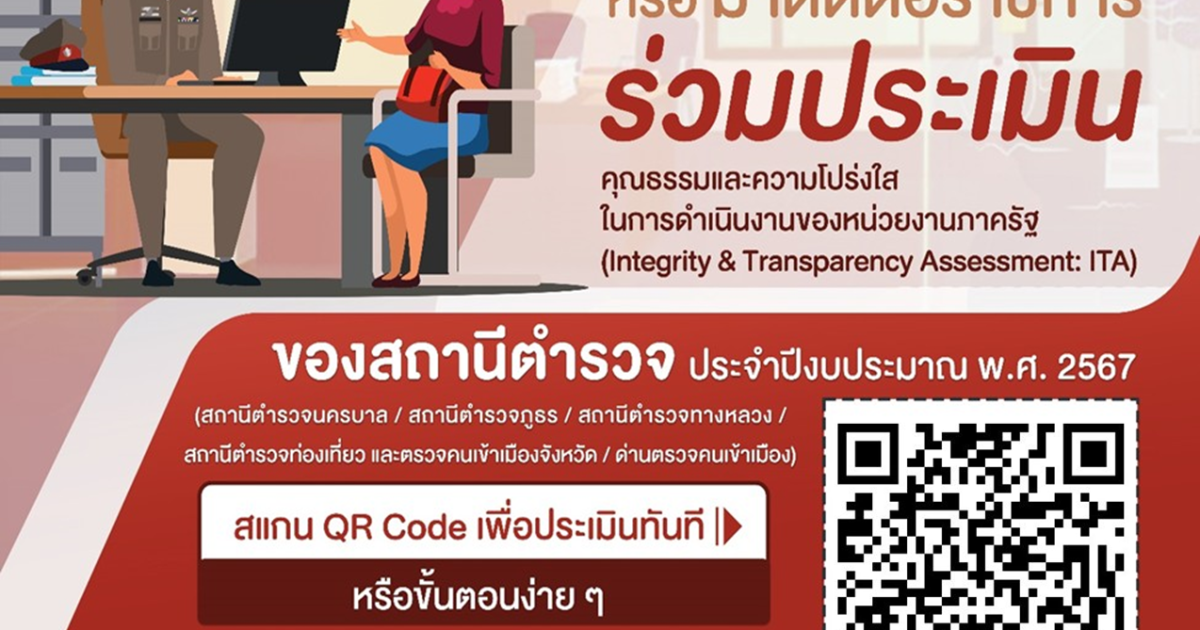 ขอเชิญผู้มารับบริการหรือมาติดต่อราชการร่วมประเมินคุณธรรมและความโปร่งใสในการดำเนินงานของหน่วยงานภาครัฐ (Integrity and Transparency Assessment : ITA) ประจำปีงบประมาณ พ.ศ. 2567 ของสถานีตำรวจภูธรสวนผึ้ง ประจำปีงบประมาณ พ.ศ. 2567 16 กุมภาพันธ์ 2024 โดย adm_suanphueng adm_suanphueng / ข่าวประชาสัมพันธ์ ขอเชิญผู้มารับบริการหรือมาติดต่อราชการร่วมประเมิน แบบวัดการรับรู้ของผู้มีส่วนได้ส่วนเสียภายนอก ของ สภ.สวนผึ้ง สามารถ สแกน QC CODE เพื่อเริ่มทำแบบประเมินได้เลย หรือ คลิ๊กลิงก์ด้านล่าง เพื่อเข้าทำแบบประเมิน https://itap.nacc.go.th/s/F8259157