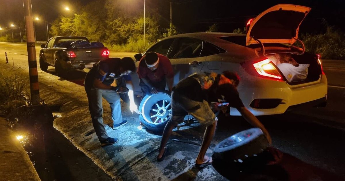 🚔 ว.4 ว.10 ที่เกิดเหตุ เหตุประชาชนขอความช่วยเหลือ รถยางแตก บริเวณเลยวัดหนองหมีมาประมาณ 200 เมตร ว.4 ให้การช่วยเหลือ สามารถเดินทางต่อไปได้