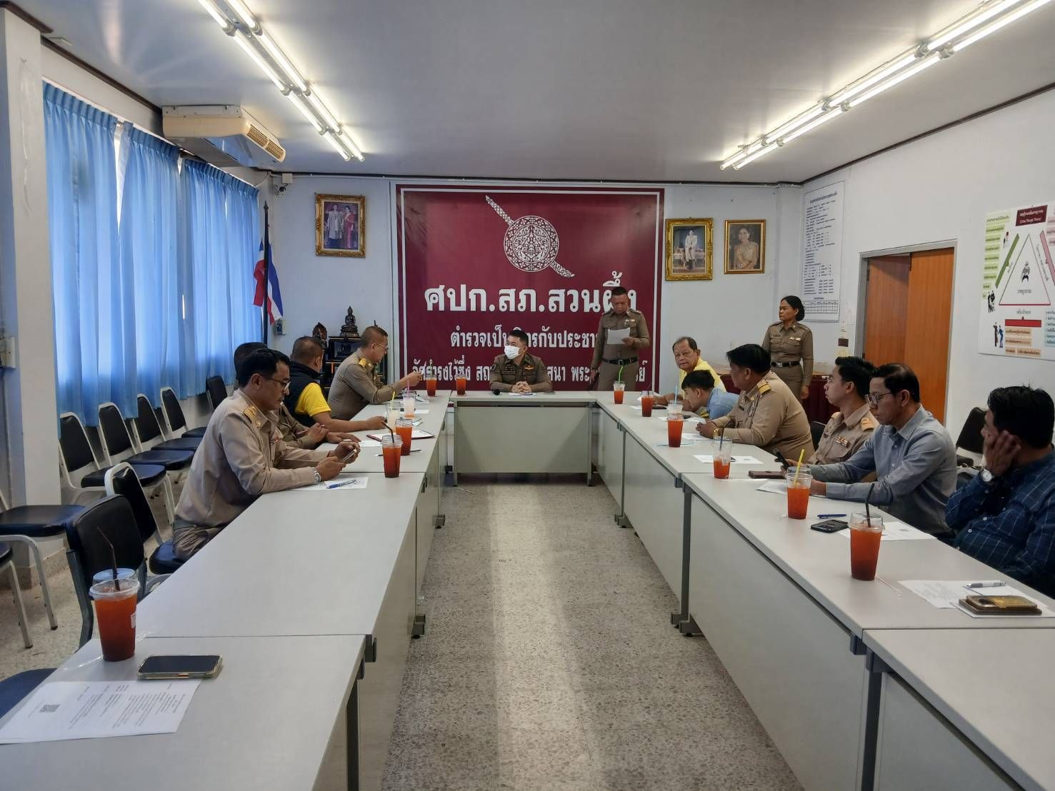 วันที่ 10 กุมภาพันธ์ 2568 เวลา 10.00 น.พ.ต.อ.อำนวย เด่นเวหา ผกก.สภ.สวนผึ้งประชุมหัวหน้างานสืบสวน สอบ