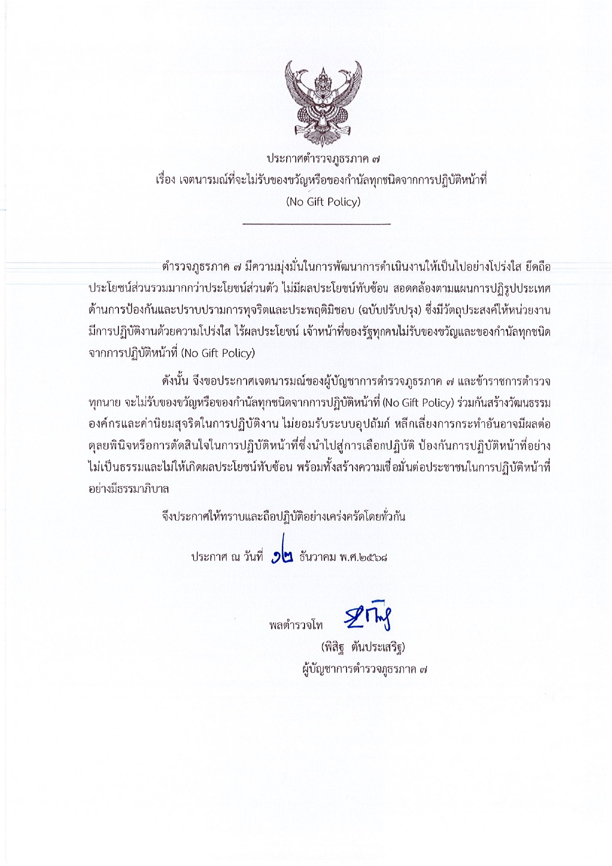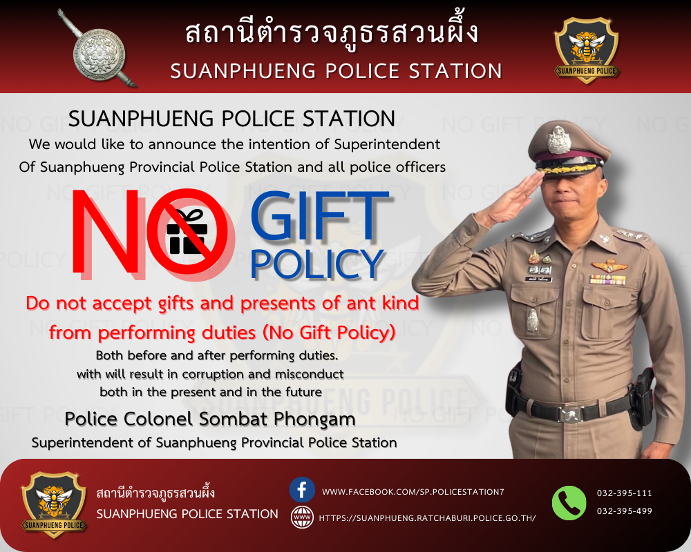 ประกาศเจตนารมณ์ไม่รับของขวัญ สภ.สวนผึ้ง ฉบับภาษาไทย และ ภาษาอังกฤษ (ENG)