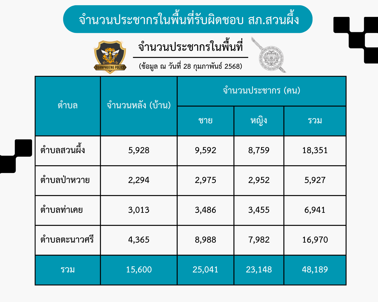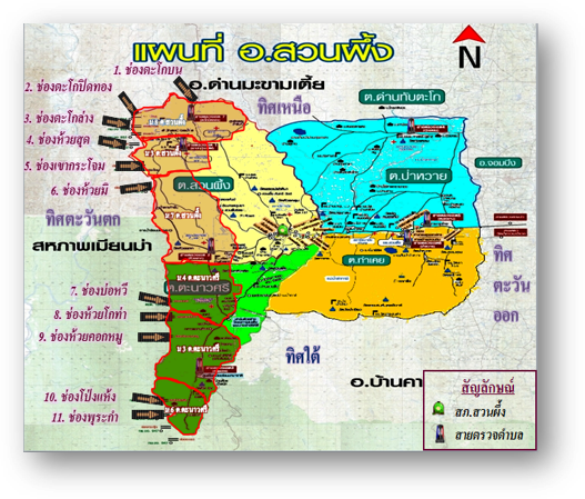 พื้นที่ส่วนใหญ่มีลักษณะเป็นที่ราบสูง มีภูเขาจำนวนมาก พื้นที่ทั้งหมดอยู่สูงกว่าระดับน้ำทะเล ตั้งแต่ 300 ถึง 1,279 เมตร โดยเฉพาะทางทิศตะวันตก มีเทือกเขาตะนาวศรี อันเป็นเส้นกั้นเขตแดนระหว่างประเทศไทยกับประเทศพม่า ยอดเขาสูงที่สุดในอำเภอสวนผึ้ง คือ ยอดเขากระโจม